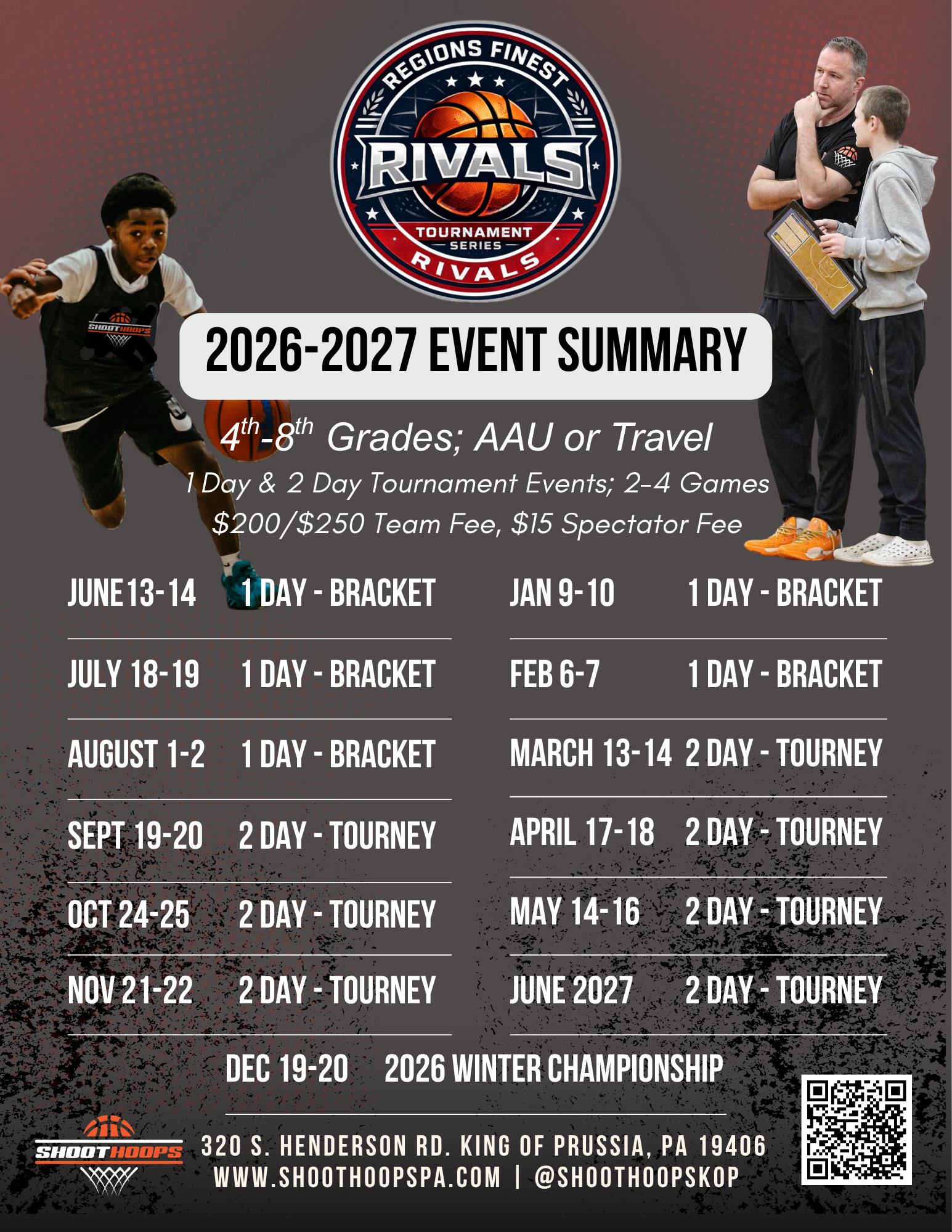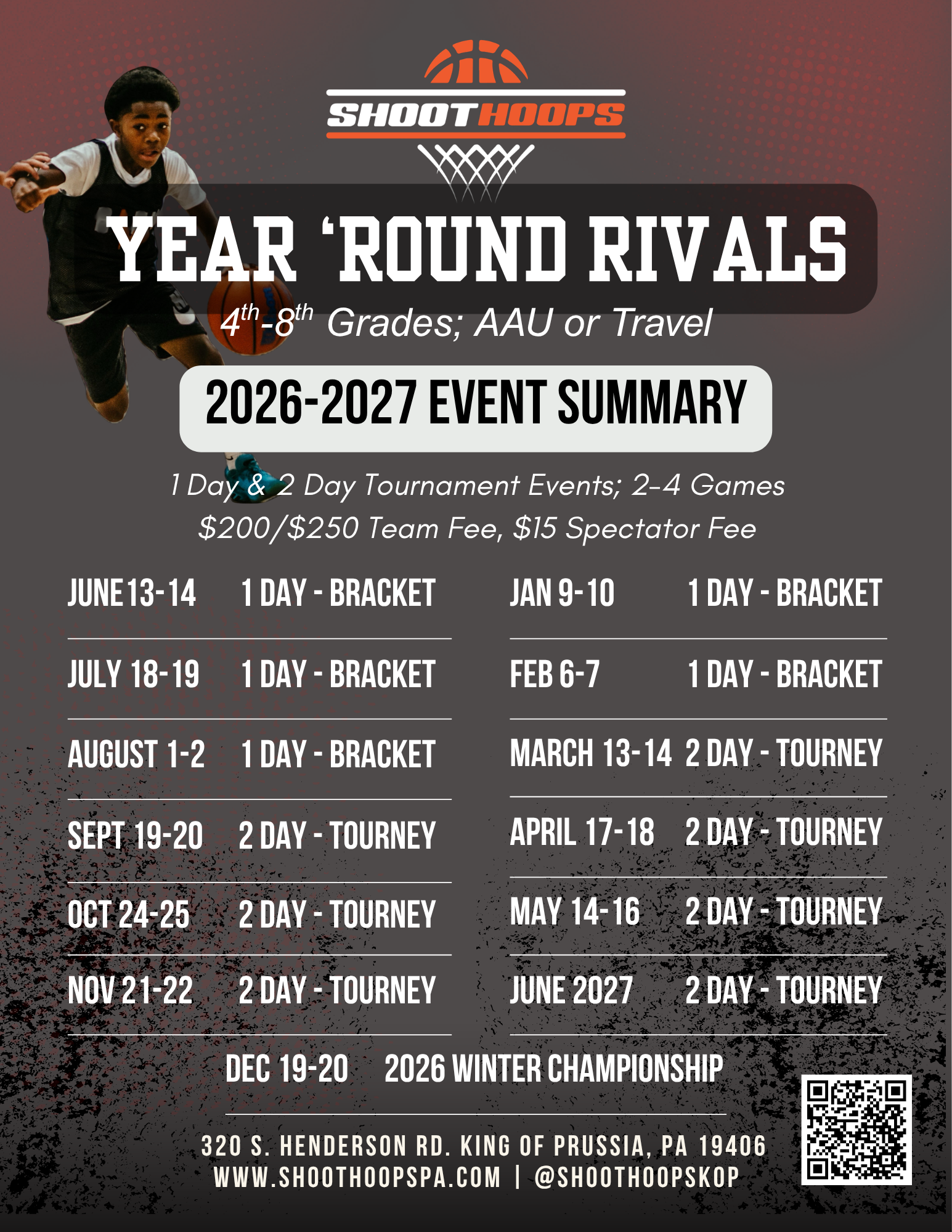 KOP Tournaments Upcoming Events May Event Register Here! Rivals Register for More Info 67 Summer Slam Register for More Info Register Here Register Here for More Info Register Here for More Info Shoot Hoops KOP Basketball Club 320 S. Henderson Rd King of Prussia, PA 19406