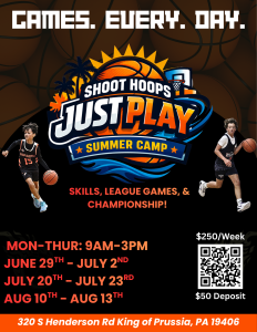 ‘Just Play’ Summer Camp 'Just Play' Summer Camp Games. Every. Day. Step 1 of 2 0% 'Just Play CampsPlayer Information Player's Name(Required) First Last Gender(Required) Male Female Date of Birth(Required)MonthMonth123456789101112DayDay12345678910111213141516171819202122232425262728293031YearYear202720262025202420232022202120202019201820172016201520142013201220112010200920082007200620052004200320022001200019991998199719961995199419931992199119901989198819871986198519841983198219811980197919781977197619751974197319721971197019691968196719661965196419631962196119601959195819571956195519541953195219511950194919481947194619451944194319421941194019391938193719361935193419331932193119301929192819271926192519241923192219211920Age(Required)Grade(Required)2nd Grade3rd Grade4th Grade5th Grade6th Grade7th Grade8th Grade9th GradeSchool(Required)Payment(Required) $225 Full Payment (10% OFF) $50 Deposit Desired Weeks(Required) June 29 - July 2 July 20 - July 23 Aug 10 - Aug 13 Name of Parent Who is Registering Player(s)(Required) First Last Parent's Email(Required) Parent's Phone Number(Required)$50 Deposit - Balance Due June 1(Required) Price: Pay in Full - 10% OFF(Required) Price: Total Credit Card(Required)Card Details Cardholder Name Please let us know if you have any additional comments or feedback